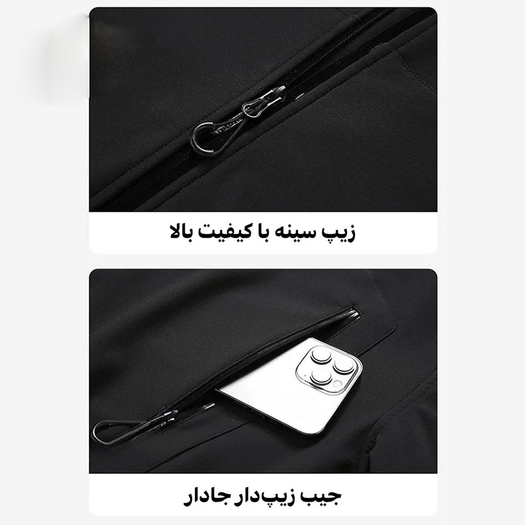 - طراحی جیب ها: جیب سینه زیپی + جیبهای جانبی زیپی