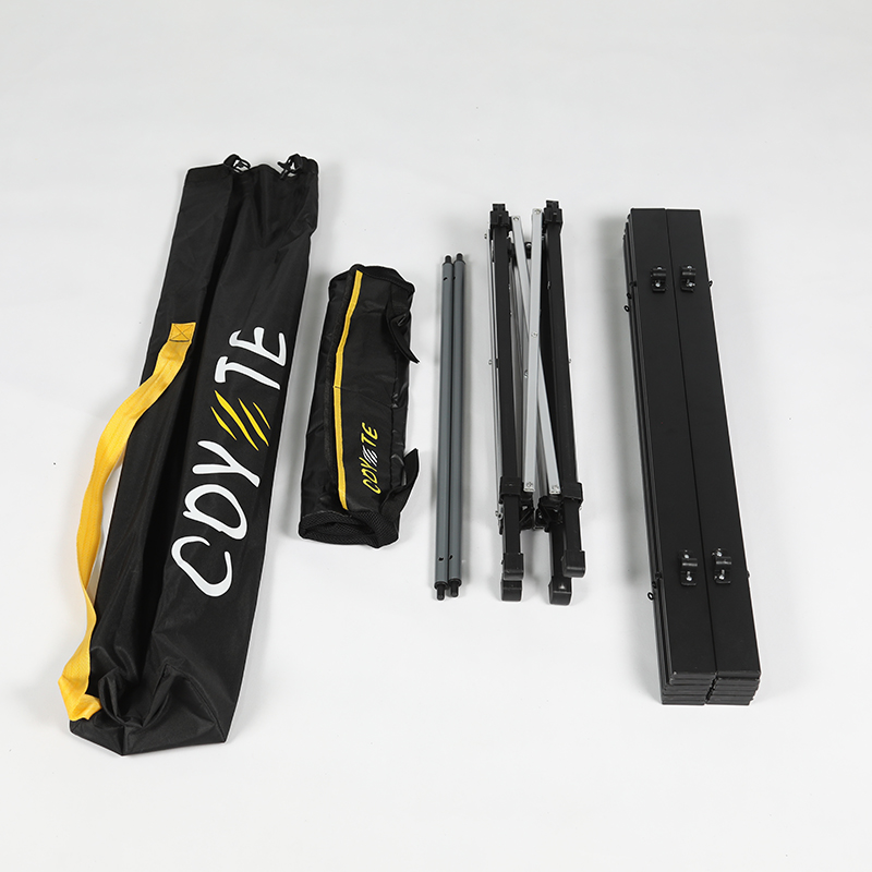 میز تاشو آلومینیومی از دیگر محصولات بسیار کاربردی در سفر میباشد که با وزن کم و باز و بست آسان طراحی شده است ، صفحه و پایه های میز از پروفیل آلومینیومی با رنگ مشکی الکتروستاتیک میباشد.
