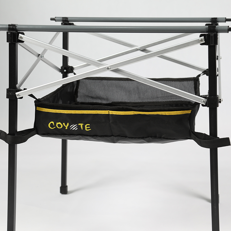 طراحی این میز به گونه ای می باشد که بیشترین استحکام و کمترین لغزش را داشته باشد. این میز تا 50 کیلوگرم تحمل وزن را دارد و این سایز مناسب استفاده ی چهار نفر میباشد. همچنین طبقه ی پارچه ای زیرین میز فضای مناسبی را جهت قرار دادن لوازم اضافی یا خرید ها در اختیارتان میگذارد. چهار طرف پایه های میز امکان قرار دادن کیسه ی خرید و یا کیسه ی زباله را نیز دارد.