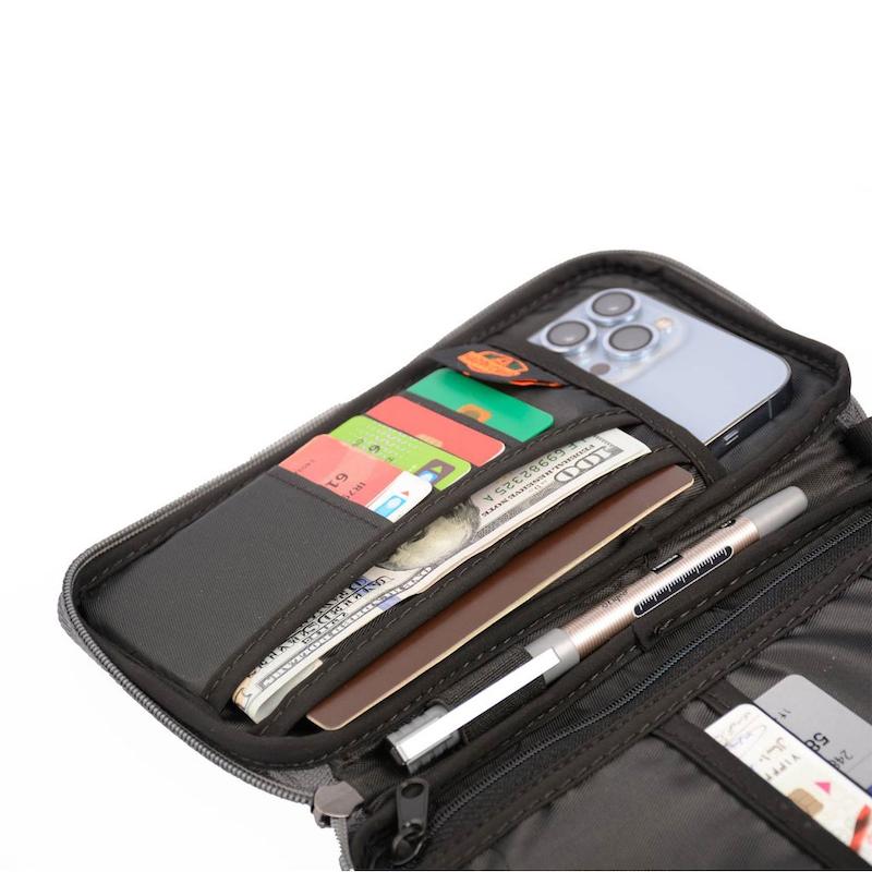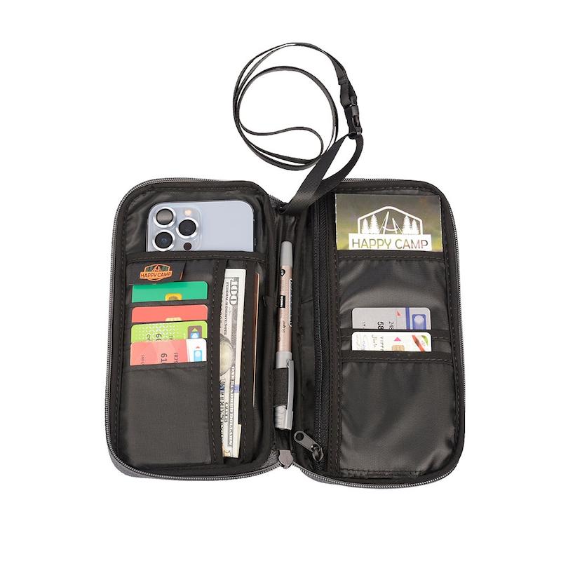 کیف پاسپورت هپی کمپ 46823 هم برای سفر و هم برای استفاده روزمره عالی است. شما به راحتی می توانید گذرنامه، تلفن همراه و سایر چیزهای کوچک ضروری خود را در این کیف پاسپورت قرار دهید. کیف HAPPY CAMP از پارچه ملانژ با طرح کتان لایه های اسفنجی ضد ضربه ساخته شده است، اتصالات با کیفیت بالا دوام آن را تضمین می کند. در داخل کیف فضا های زیادی برای کارت های متفاوت در اندازه های مختلف و جیب برای اسناد و تلفن همراه دار وجود دارد. یک جیب کوچک در بیرون کیف وجود دارد تا بتوان به راحت ی تلفن همراه را داخل آن قرار داد. کیف پاسپورت و مدارک هپی کمپ از مقاومت کافی در جنس پارچه و دوخت برای نگهداری از مدارک شخصی شما برخوردار است. موارد ضروری دسترسی داشت. بند گردنی کیف که قابلیت جداسازی دارد، به حمل راحت تر کیف کمک می کند.
