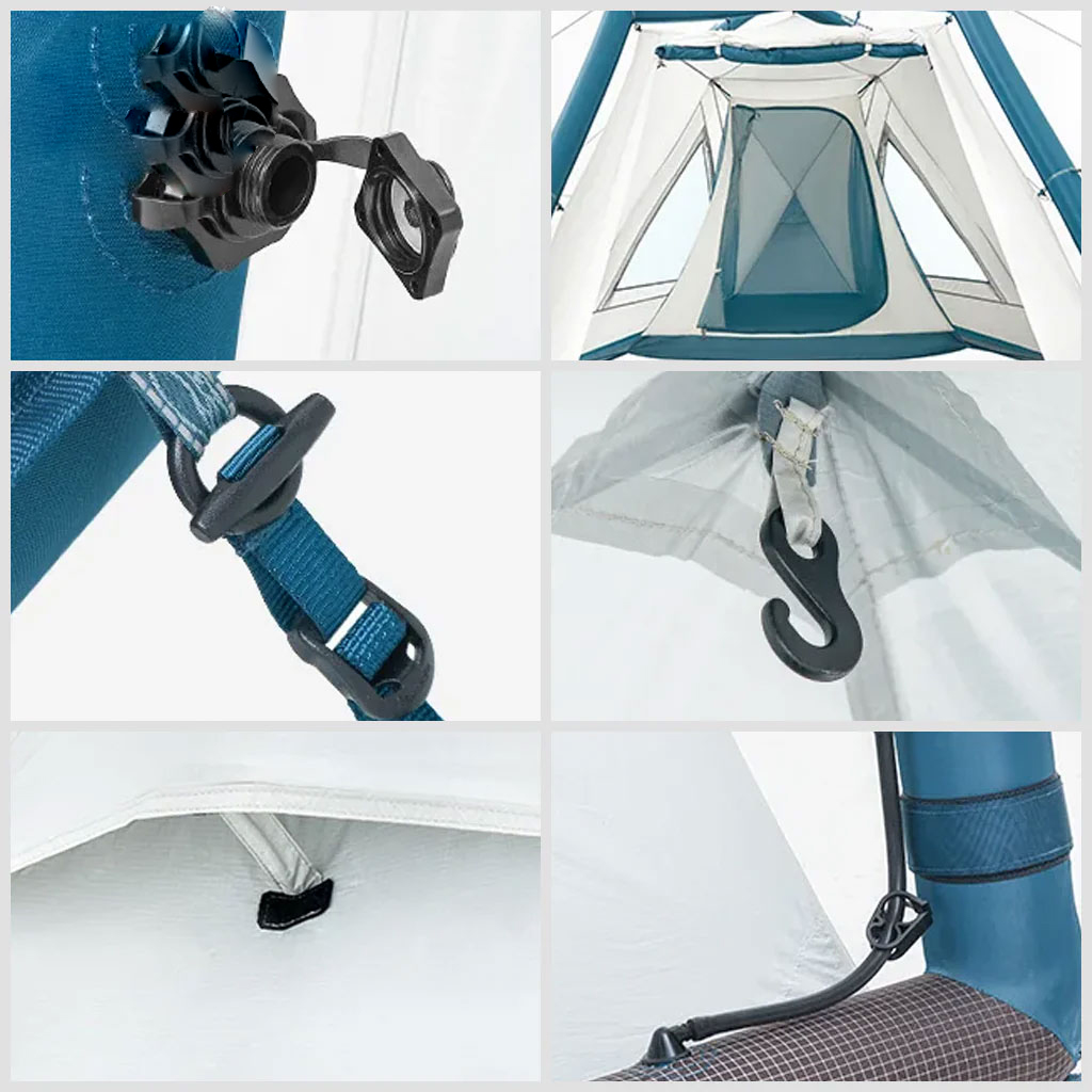 با ابعاد 450×260×190 سانتی متر (طول × عرض × ارتفاع)، میتوانید آزادانه در داخل چادر حرکت کنید، حتی اگر بیش از 1.85 متر بلندی قدتان باشد، ستون ها و قاب بادی بسیار مقاوم از جنس TPU از شما و لوازمتان به هنگام وزش باد های شدید و بارش باران محافظت کرده و فضای امنی را ایجاد میکند تا یتوانید خود را در دنیایی از تجربیات باورنکردنی و لذت بخش غوطه ور کنید.