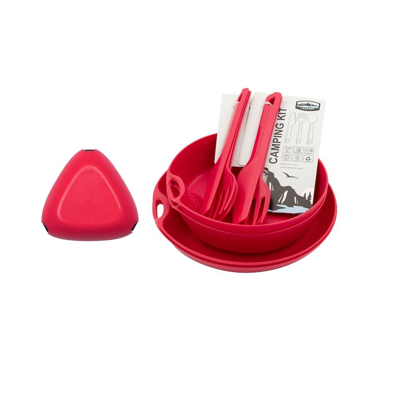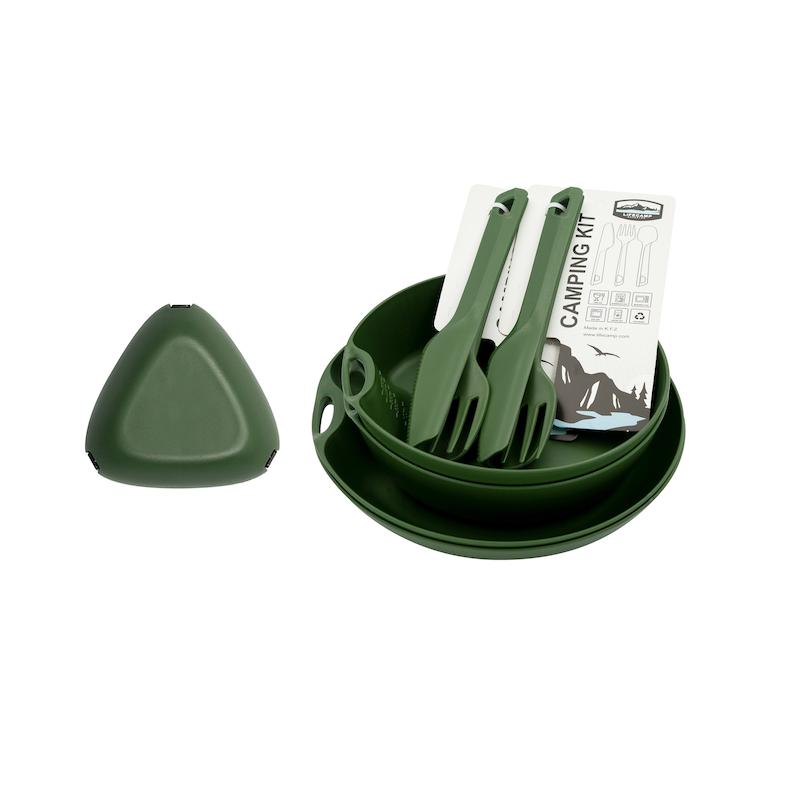 ست 11 تکه لایف کمپ، شامل 2 عدد قاشق، 2 عدد چنگال 2 کارد و 2 عدد بشقاب غذاخوری و کاسه و 1 عدد ادویه پاش میشود. . جنس بدنه در این ست از پلاستیک پلی پروپلین است.