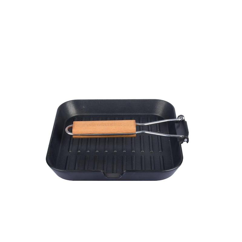 تابه ذغالی لایف کمپ کد 45835 با طراحی، وزن و ابعاد مناسب، انتخابی معقول جهت استفاده در انواع برنامه های طبیعت گردی، سفر و یا کمپینگ میباشد. این محصول از جنس آلومینیوم دایکست با روکش تفلون در داخل و روکش مخصوص سیلیکون در قسمت خارجی ساخته شده است که آن را در برابر تغییرات دمایی شدید، رطوبت، ضربه، خراش و … مقاوم تر، ایمن تر و بادوام تر میسازد. با توجه به قابلیت انتقال حرارت به شکل یکنواخت، طراحی دسته با زاویه 45 درجه که باعث میشود حین آشپزی دست کمتر در معرض حرارت آتش قرار گیرد و فراهم آوردن امکان طبخ مواد غذایی با کیفیت بالا و روغن کمتر، استفاده از آن بسیار لذت بخش و آسان میباشد. تابه ذغالی لایف کمپ با کیفیت ساخت بالا و طراحی دسته چوبی تاشو، میتواند نیاز شما به یک تابه کاربردی و قابل حمل را کاملا برطرف نماید.