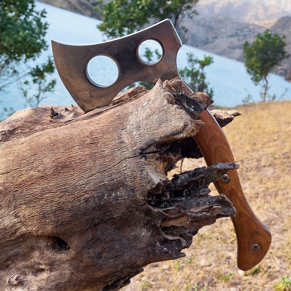 دسته از چوب زبانگنجشک (ون) — که بهخاطر جذب ارتعاش و استحکام بالا شناخته میشود — ساخته شده و حس کنترل و راحتی را در استفادههای طولانی منتقل میکند. طراحی دسته و مرکز ثقل کاملاً متعادل شده تا هم در ضربه زدن و هم در کارهای دقیق عملکرد بهینه داشته باشید. غلاف چرمی (سورت A) جداگانه عرضه میشود و دوخت با کیفیت و حلقه کمری محکم، حفظ و حمل ایمن تبر را تضمین میکند.