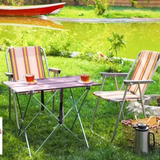 ست میز و صندلی تاشو مسافرتی ۲ نفره فوم دار با کاور و دسته مقاوم