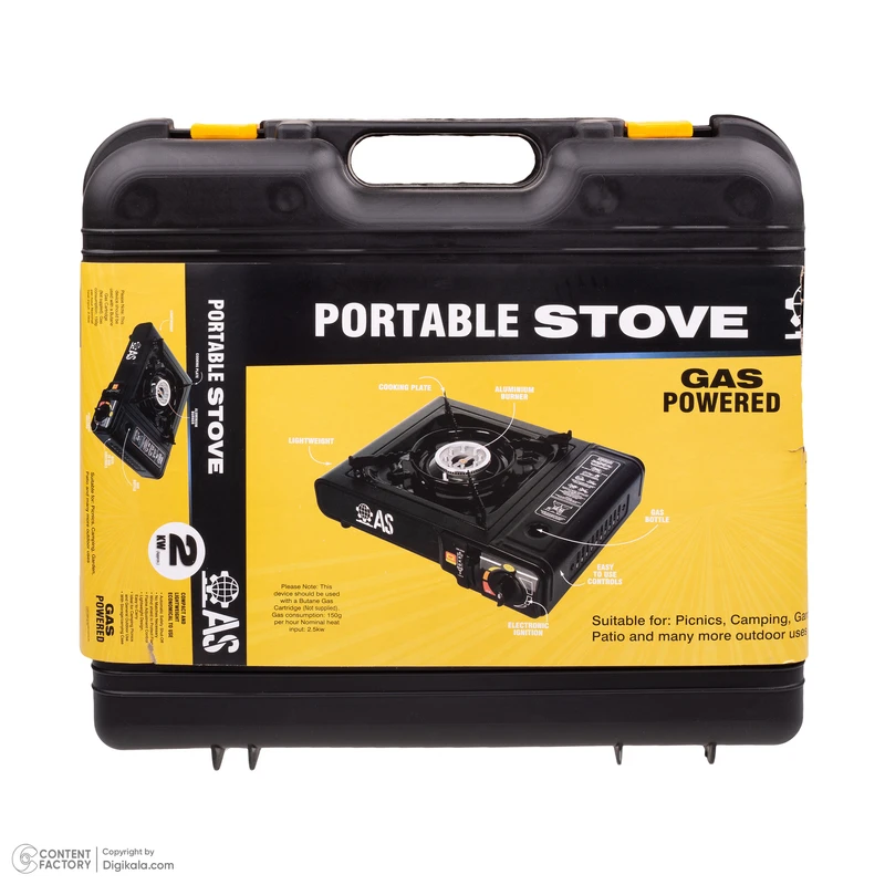اجاق گاز سفری AS مدل سامسونتی به همراه 4 عدد کپسول سوخت 210 گرمی اجاق مسافرتی یا قابل حمل بوده و جهت استفاده در فعالیت های کمپینگ ، کوهنوردی ، مسافرت و استفاده در باغ و ویلا گزینه ای بسیار ایده آل و کاربردی بشمار میآید، این اجاق گاز از نظر کارایی و کاربرد کاملا شبیه به اجاق گاز خانگی طراحی گردیده و علاوه بر کپسول های گاز استوانه ای سفری که حاوی گاز بوتان است ، به راحتی به انواع کپسول های مایع نیز متصل شده و قابل استفاده میباشد. اجاق گاز مسافرتی مدل AS مجهز به یک شعله پوش با قابلیت جداسازی است، این شعله پوش به صورت گسترده طراحی شده و تمام سطح ظروف پخت و پز را پوشش میدهد ، از دیگر ویژگی های مهم در اجاق مسافرتی AS مقاومت بالای آن در برابر نفوذ باد است ، این اجاق بر خلاف سایر اجاق های پیک نیک که شعله آنها در برابر باد به راحتی خاموش میشود ، از مقاومت بالایی در برابر باد برخوردار است و جهت استفاده در فضای باز کاربرد بسیاری دارد. اجاق گاز سفری مجهز به یک فندک سر خود بوده و توسط سیستم جرقه زنی الکترونیکی که در قسمت سر شعله تعبیه گردیده به راحتی روشن میگردد ، علاوه بر این مجهز به یک سنسور تشخیص فشار بوده که سبب افزایش ایمنی هنگام استفاده میشود همچنین مجهز به یک هاردکیس مستحکم و مخصوص بوده که علاوه بر راحتی هنگام حمل و نقل و جا به جایی در برابر ضربه نیز از اجاق گاز محافظت مینماید.