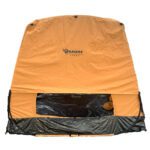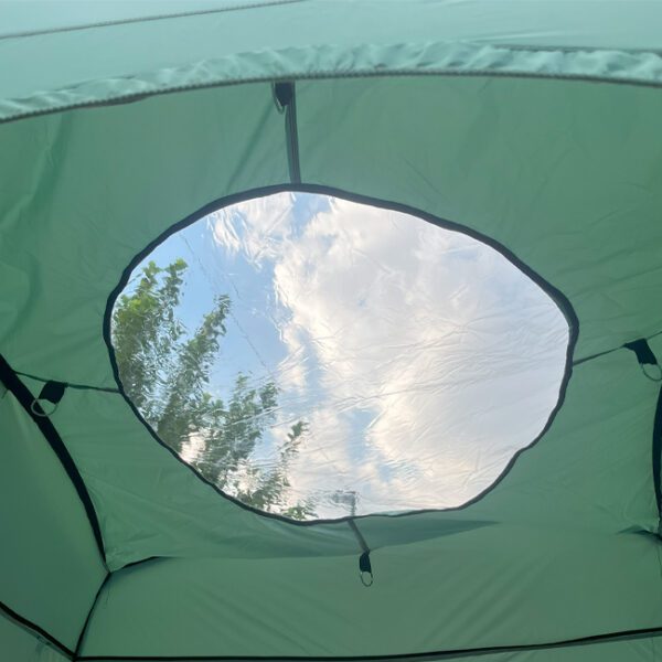 دید 360 درچه این چادر به علاوه دید در سقف (پاناروما) زیبایی این محصول و چند برابر کرده است. 3 طرف این محصول به صورت درب استفاده میشود  یک طرف دیگر این چادر از طلق استفاده شده است.
